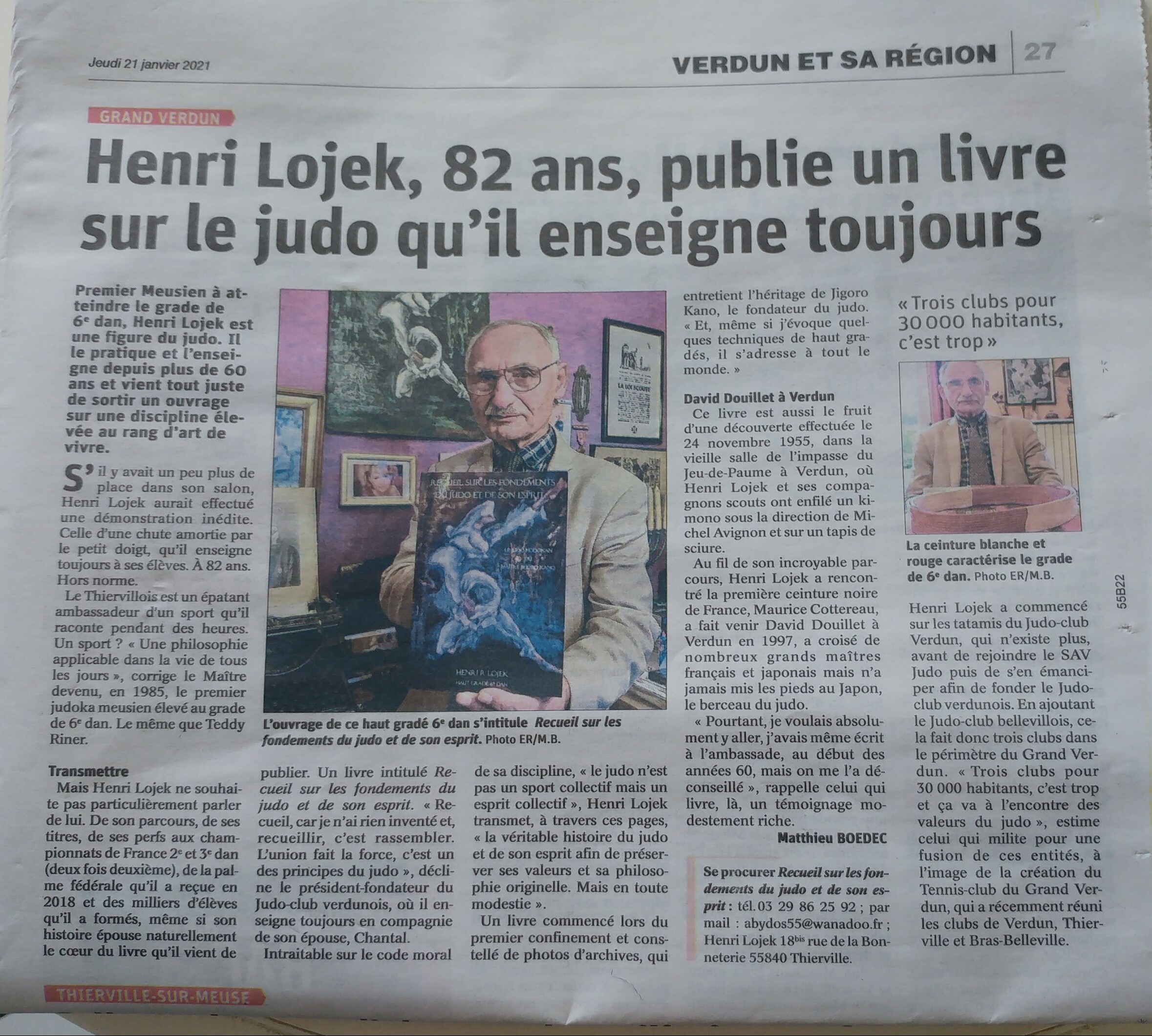 ARTICLE PRESSE REGIONALE A L'OCCASION DE LA PUBLICATION DU LIVRE - RECUEIL SUR LES FONDEMENTS DU JUDO ET DE SON ESPRIT -